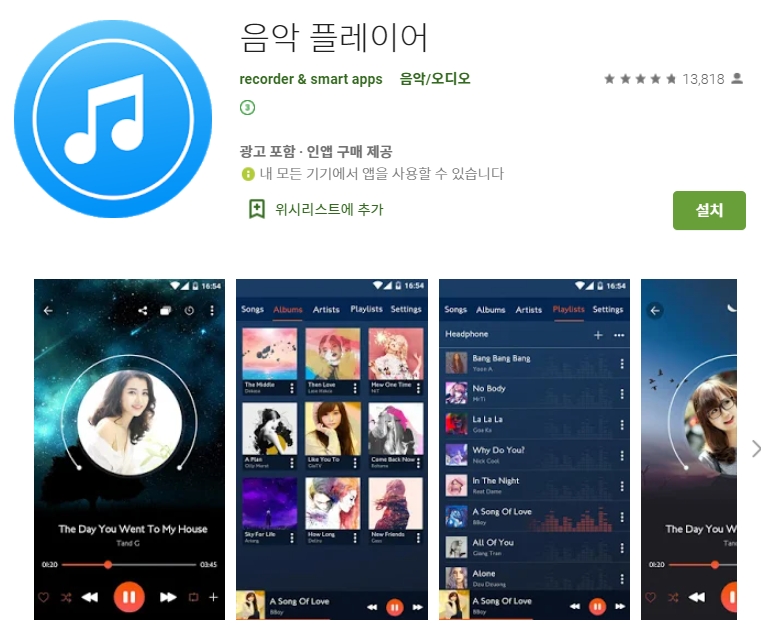[음악 플레이어 앱 스크린샷]