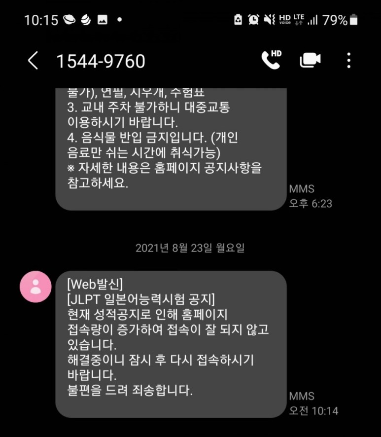 10시 15분에 JLPT로부터 메세지가 있었습니다.