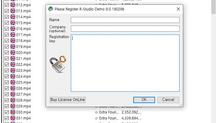 256KB 이상의 크기 파일 복구를 위한 라이센스 등록 (3) OK 눌러 주십시오.