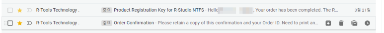 구매후에는 메일이 2개 온다. 하나는 라이센스 키 정보, 하나는 인보이스이다.