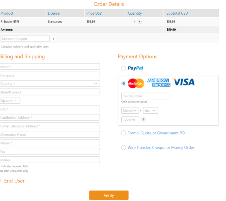 일반 사용자의 경우 파일 형식에 따라 우측에 위치한 R-Studio NTFS($59.99) or FAT($49.99)를 선택하면 된다. FAT 라이선스는 대개 USB에 해당한다고 보면 된다.